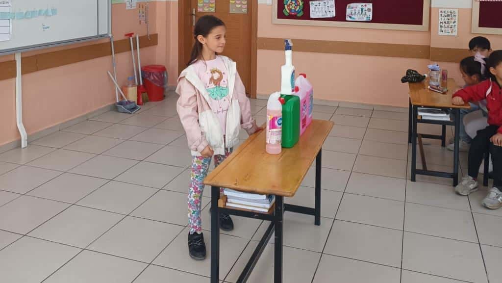 ‘’Temizlik Malzemeleri Tanıtımı’’ etkinliğinde öğrenciler, temizlik malzemelerini (sabun, şampuan, diş macunu vb.) tanıtan ve her birinin nasıl kullanıldığını anlatan bir sunum gerçekleştirmişlerdir. Katılan öğrenciler de her malzeme hakkında bilgi alıp doğru kullanımlarını öğrenmişlerdir. Temizlikte kullanılan ve uzak durmaları gereken temizlik malzemeleri hakkında öğrencilere bilgilendirmelerde bulunulmuştur.